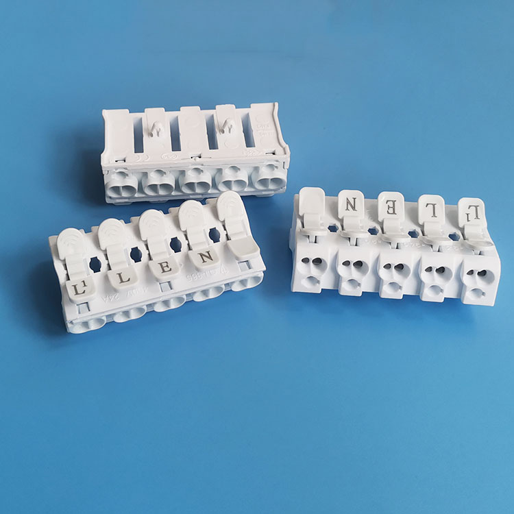产品介绍:产品名称:快速接线端子5p五位免螺丝接线柱双边按压接线器LED
