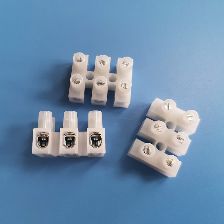 使用方法:电线剥除绝缘皮后插入端子两侧,锁上螺丝即可。