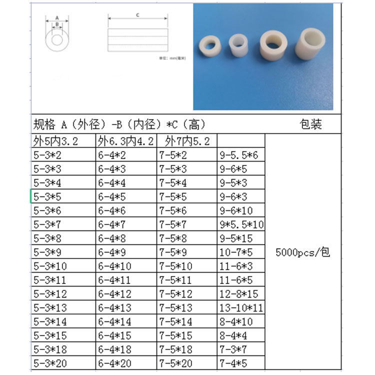 产品名称:ABS隔离柱塑料圆形空心直通柱9*5.5*6直通管间隔柱