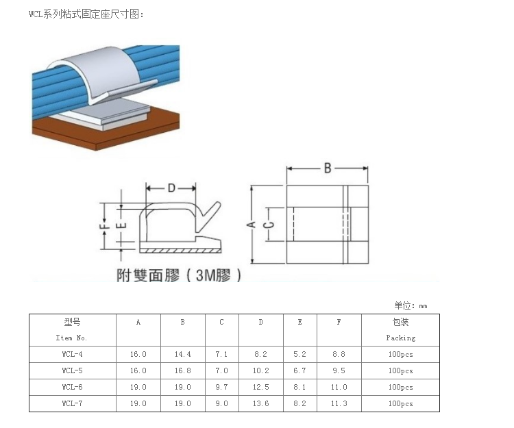 产品特点:背胶式装配,简单,快速,牢固 固定电线与机器中,整齐美观