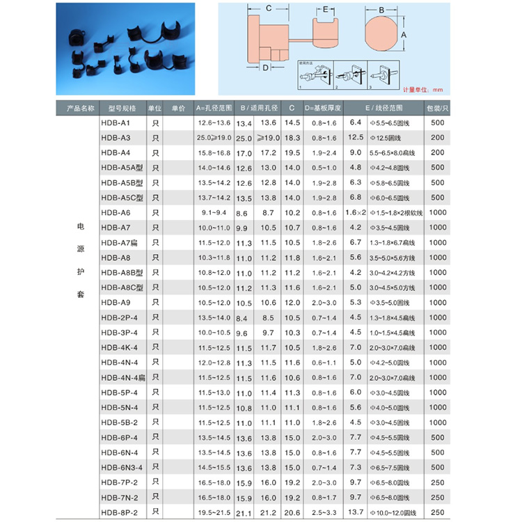 用途:各种家电用品,仪器、电脑之电源线固定及保护用,避免电源线滑动而被机板割伤