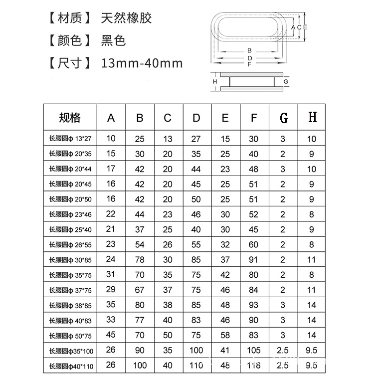 产品名称:橡胶长腰双面护线圈过线出线环椭圆护线圈开孔30*85